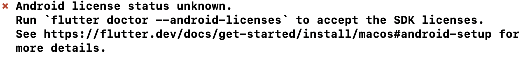- flutter doctor에서 오류를 발견한 경우 보통 해결 방법을 같이 제공해준다
