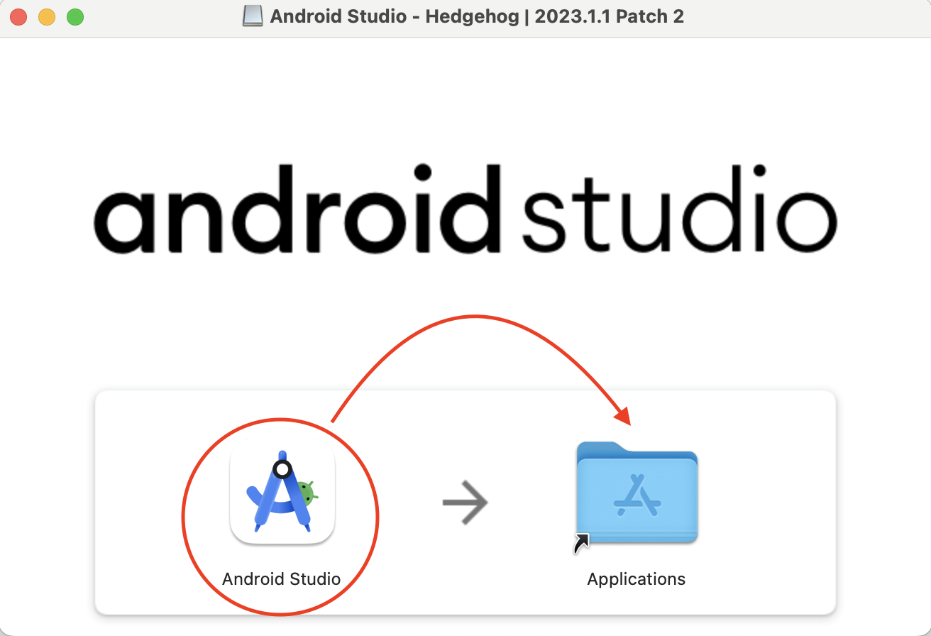3. 열린 창에서 안드로이드 스튜디오 앱 아이콘을 드래그해서 어플리케이션 폴더에 넣기